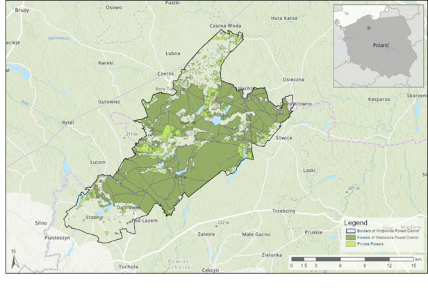 | Ownership | 85 % state forests 15 % private forests, church forests, and municipal forests |